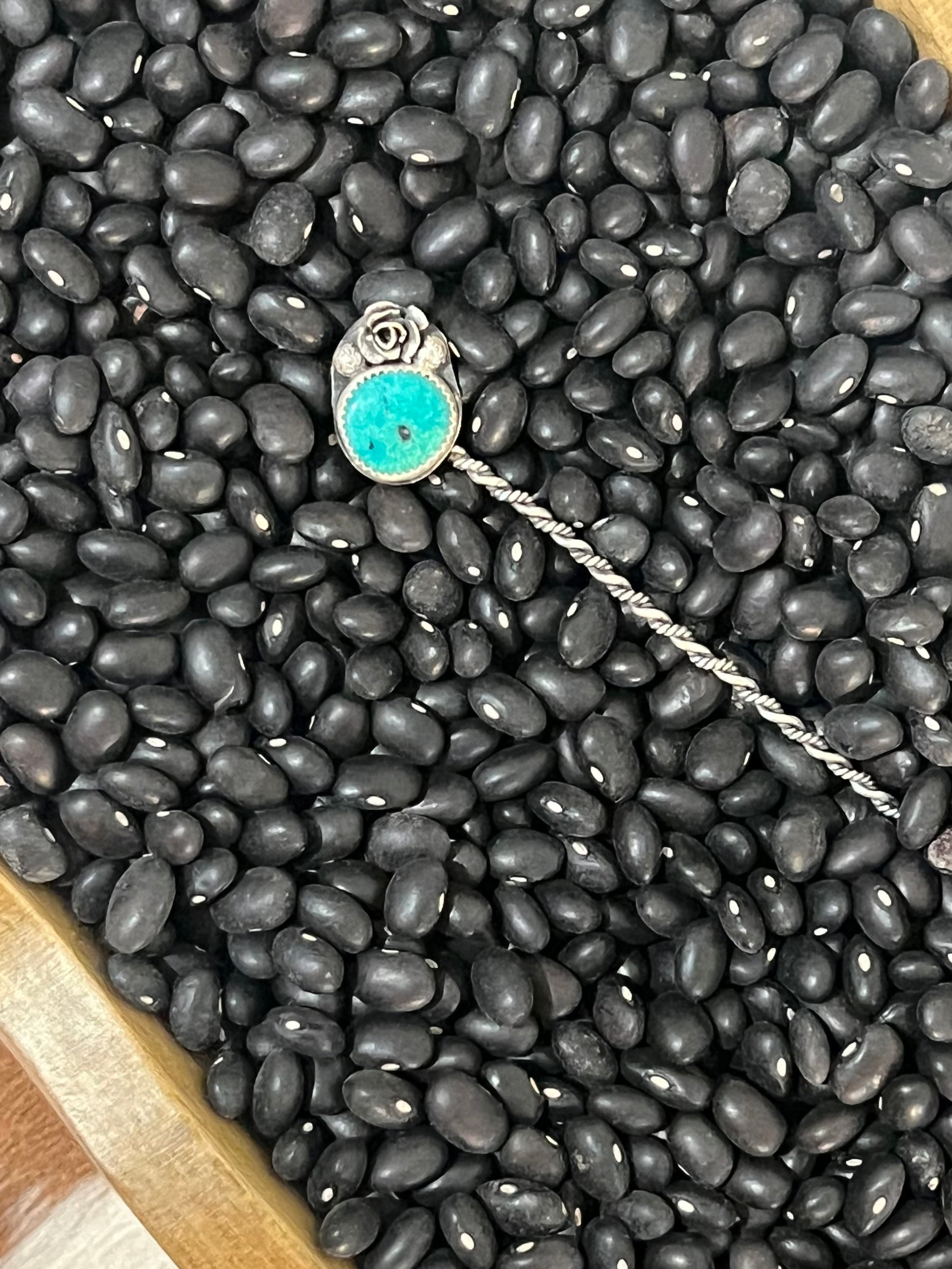 Turquoise hat pick/cowboy toothpick with sterling silver rose accent. This item is handmade from turquoise and .925 Sterling silver and looks great in any cowboy hat!